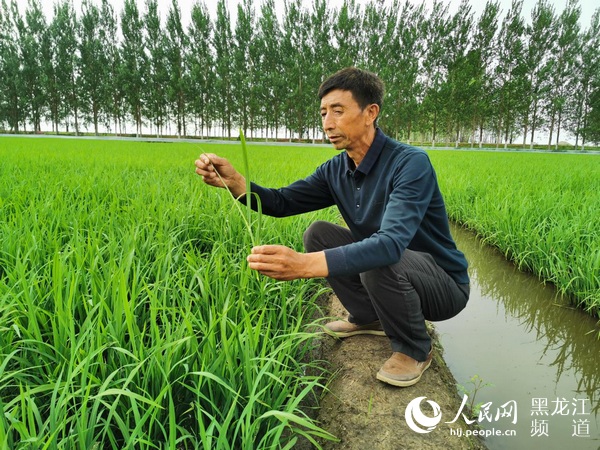 “葉色完整,沒有病斑,這秧苗長得特別理想。”7月6日上午,在北大荒農墾集團有限公司寶泉嶺分公司梧桐河農場有限公司數字農業現場,水稻種植科技示范戶董金福正在田間查看水稻長勢。