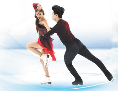 2月12日,中國隊組合任俊霏(左)/邢珈寧在花樣滑冰項目冰舞自由舞比賽中。新華社記者 顏麟蘊攝