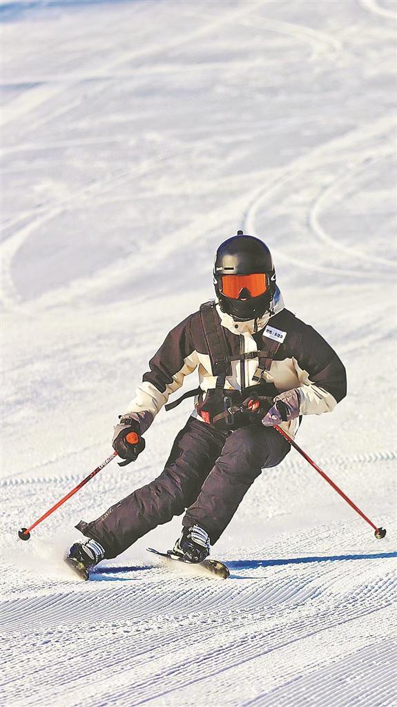 在雪道上暢滑。 記者 張雪地攝