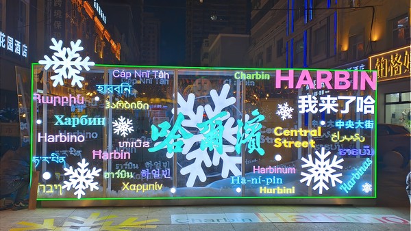 中央大街新增“世界語言冰雪打卡牆” 多國文字呈現哈爾濱冬日新地標