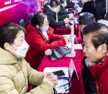 在密山市人民医院阳光大厅内,来自哈尔滨医科大学附属第一医院、第二医院、肿瘤医院等省内三甲医院的医疗专家团队早早准备就绪。呼吸内科、心内科、神经外科、儿科等科室的主任医师们耐心细致地为前来咨询的群众提供义诊服务。
