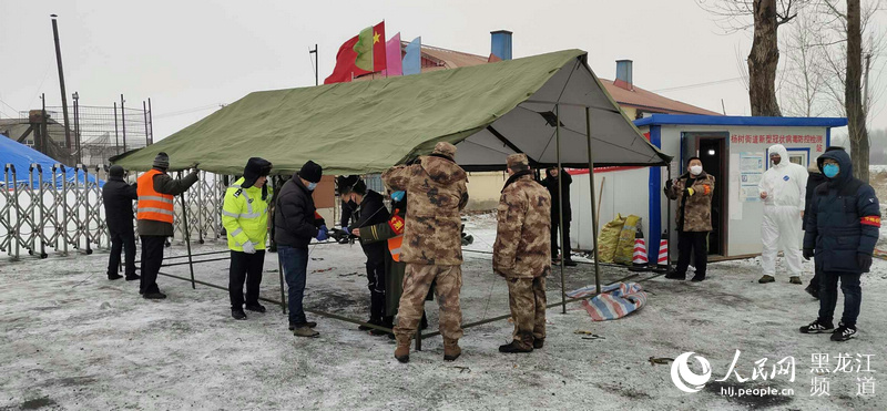 人民网哈尔滨2月21日电(焦洋、杨雪楠)2月21日,黑龙江省多地降下大到暴雪。在抗击疫情的关键时刻,广大干部群众顶风冒雪坚守疫情防控一线,为全力打赢疫情防控阻击战贡献自己的力量。
