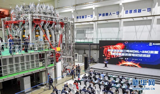 2020年12月4日,我国新一代可控核聚变研究装置“中国环流器二号M”(HL-2M)在四川成都正式建成放电,标志我国正式跨入全球可控核聚变研究前列,HL-2M将进一步加快人类探索未来能源的步伐。这是中国环流器二号M装置建成暨首次放电见证活动现场(2020年12月4日摄)。新华社记者 张超群 摄