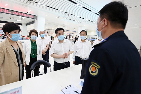 胡昌升随机来到佳木斯市政务服务中心,察看意见箱,向窗口工作人员询问行政审批事项办理情况,与办事群众亲切交谈,倾听群众意见,强调要扎实深入推进能力作风建设,切实为群众办实事、解难题,提升服务群众能力。