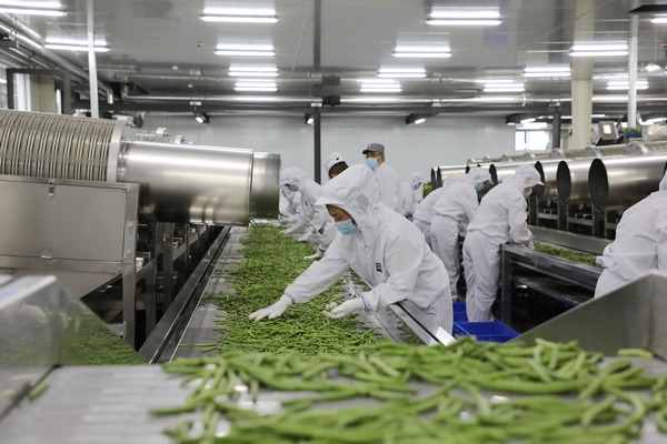 近日,位于依安县绿色有机食品产业园内的北纬四十七绿色有机食品有限公司的第二车间里,一袋袋刚刚采摘下来的青刀豆被工人们通过运输带送到了生产线上,经过挑选、剪角、气泡清洗、漂烫、冷却、振动沥水,再经过速冻隧道、终端打包等十多项流程后,变成了一箱箱保留原始口味的保鲜速冻蔬菜。