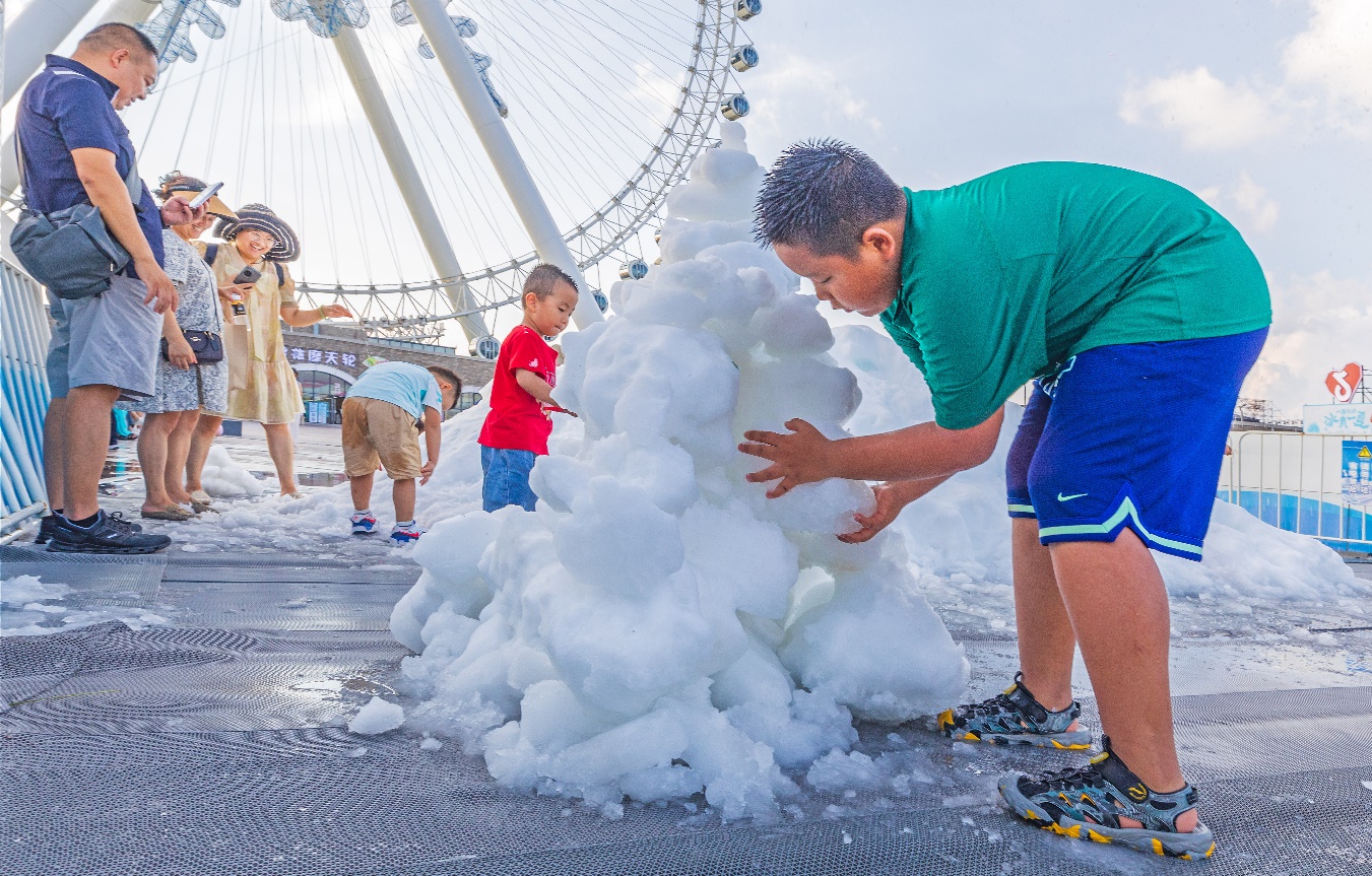 “没想到第一次看到飘雪的场景会是在夏天,真是太神奇了!”来自桂林的梁女士不断用手机给玩雪地转转的孩子拍照,把在哈尔滨遇到的“新鲜玩意儿”分享给家人和朋友。