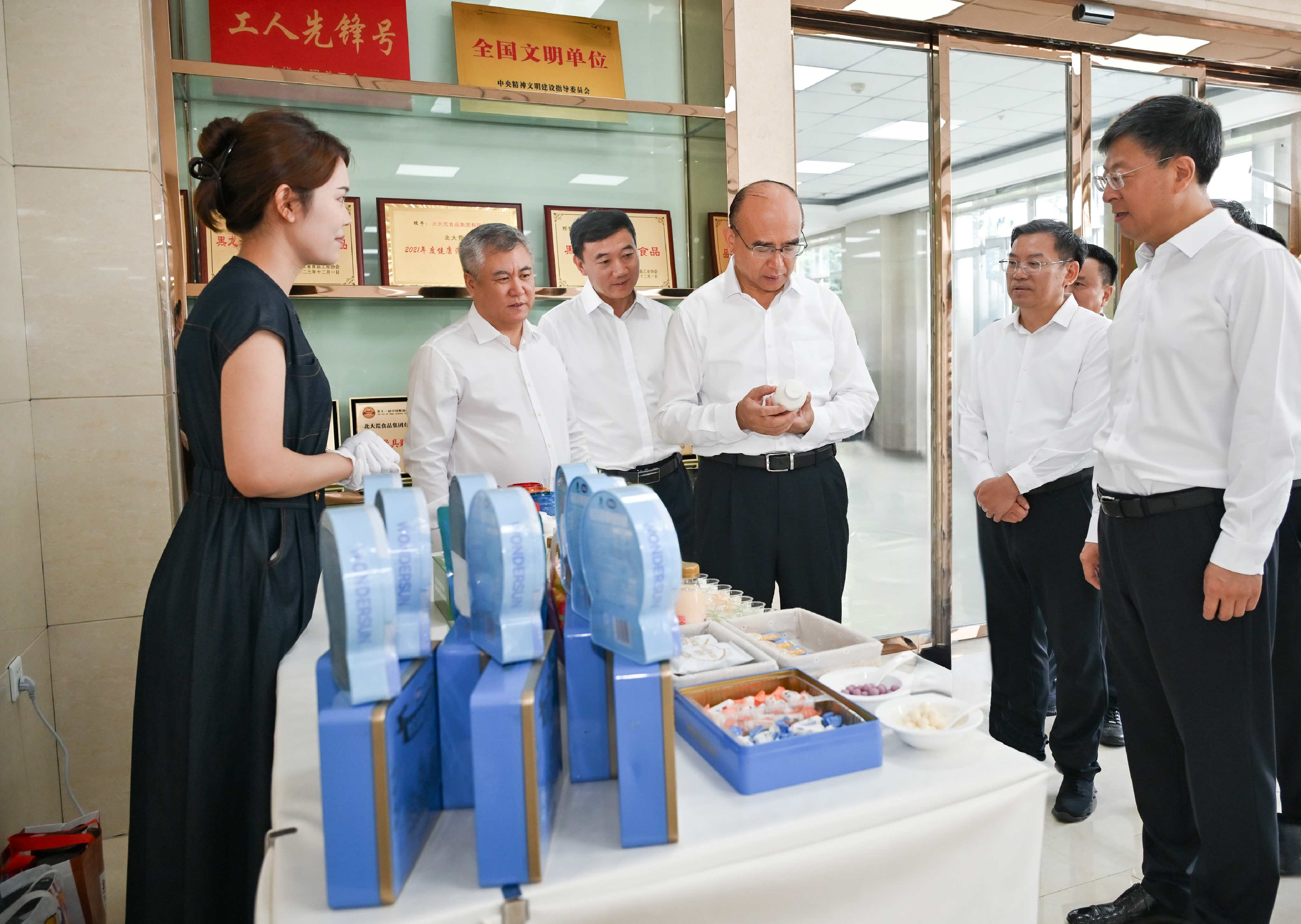 在北大荒集团哈尔滨豆制品公司,许勤了解豆制品产品开发、品牌推广、市场营销等情况。