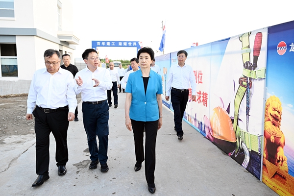 梁惠玲来到君衔药业黄精深加工建设项目现场,察看项目施工进度,听取项目建设情况介绍。