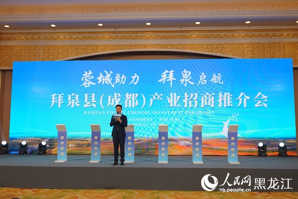 人民网成都9月20日电 (尚城、徐成龙)9月20日,黑龙江省齐齐哈尔市拜泉县在成都市举行产业招商推介会,面向西南地区展示其独特的资源禀赋、产业基础、产业优势和发展潜力,进一步深化跨区域合作,推动县域经济高质量发展。