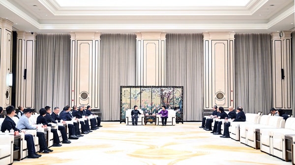 27日,黑龙江省委副书记、省长梁惠玲在哈尔滨会见中国储备粮管理集团有限公司总经理葛巧红一行。